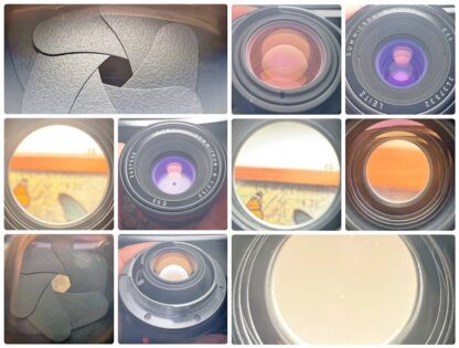 Objektiv je ve stavu blízkém novému kusu. Chod mechanických částí (ostření, lamely, teleskopická sluneční clona) je hladký, optika je čistá bez závad. Šasi je ve stavu, který je blízek nového kusu, přičemž je plně zachován i červený poziční puntík (mounting index).
