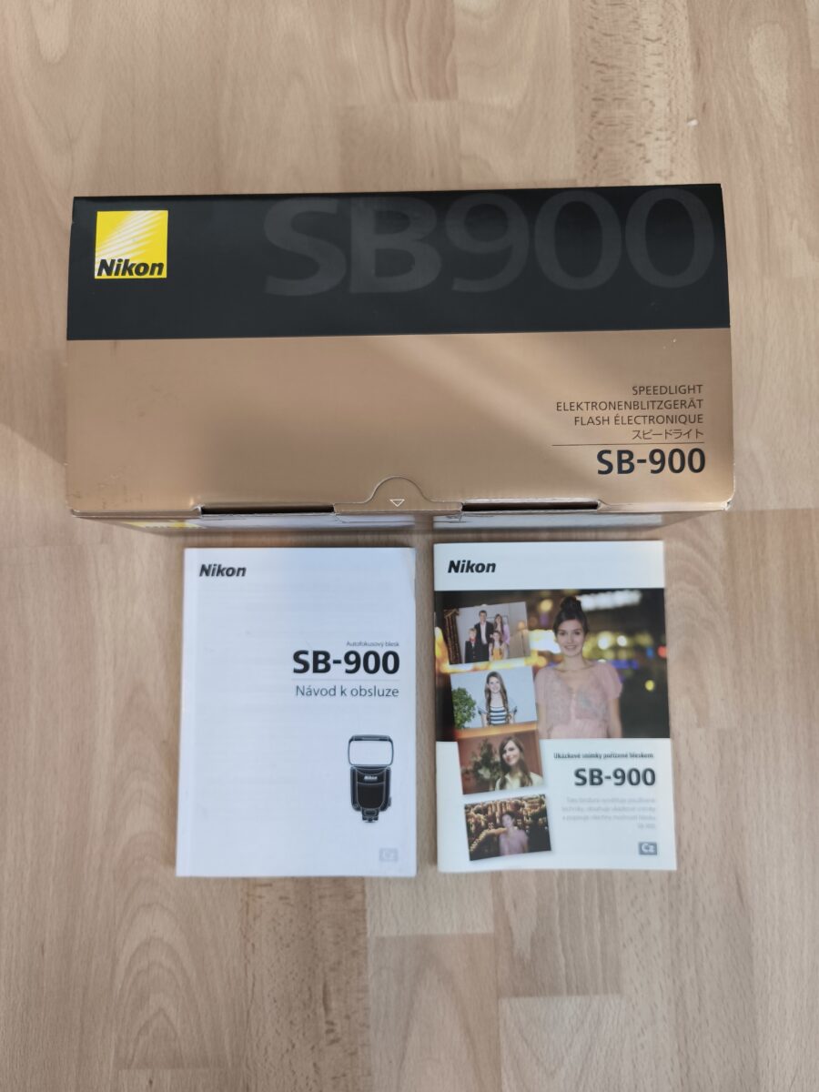 Prodám profesionální i-TTL zánovní, blesk Nikon SpeedLight SB-900. Komplet balení, obal, stojan, difuzér/soft box na hlavu blesku. Dále 4x filtry (2x žárovka a 2x zářivka) Přidám nabíjecí baterie 2600 mAh a knihu Fotografický blesk v digitální a klasické fotografii. Blesk je ve výborném stavu bez známek používání.