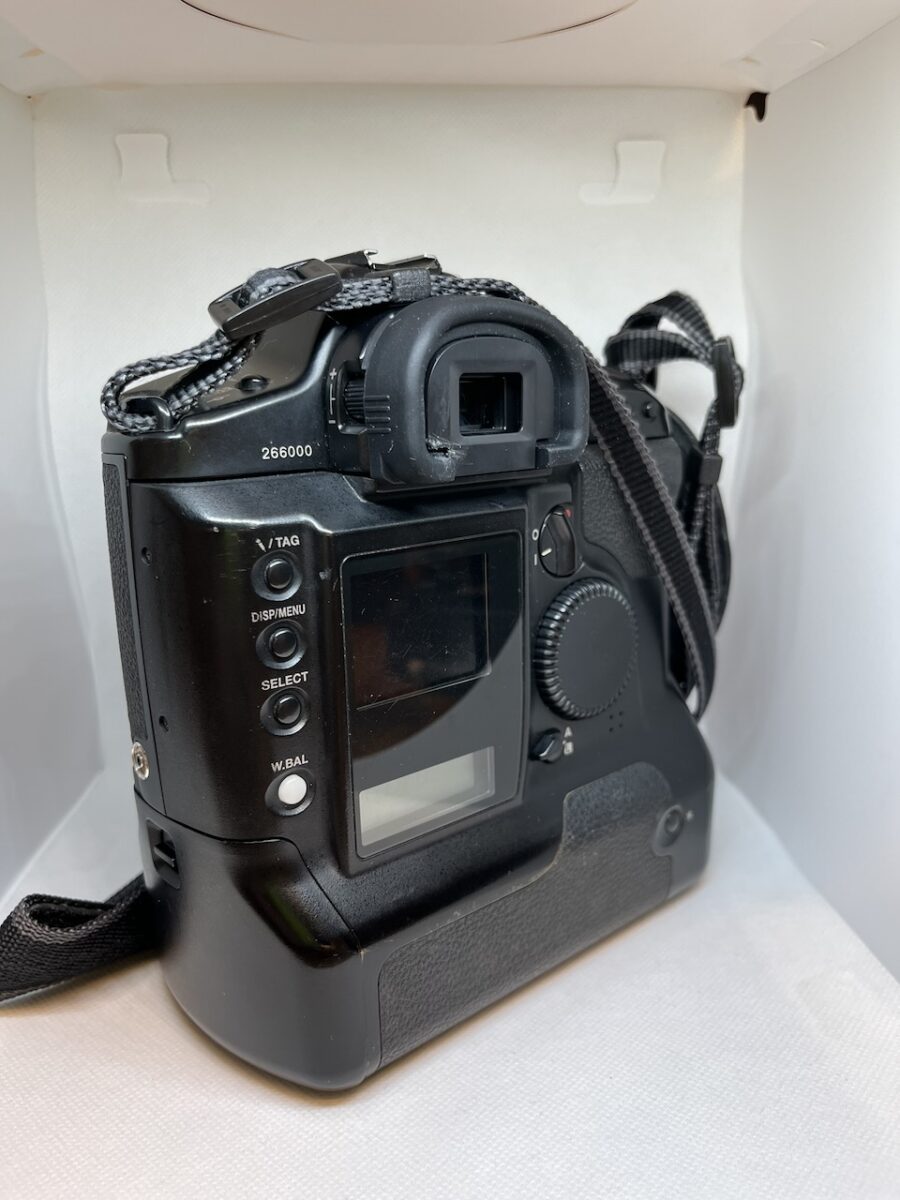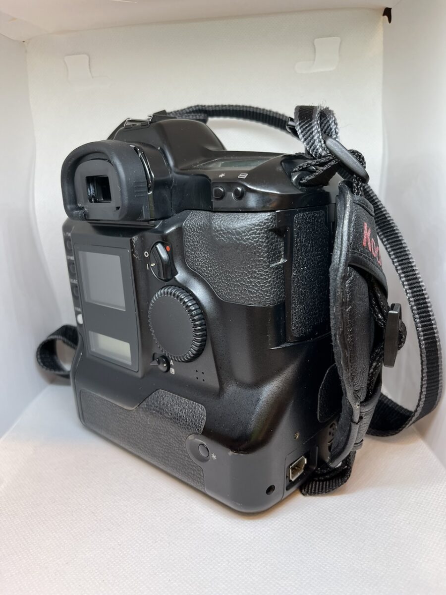 Jedná sa o zberateľký kus. Fotoaparát je vo veľmi peknom vizuálnom stave. K aparátu je originál externý zdroj. Je ho možné zapnúť a vzhľadom na jeho vek niekedy fotí a niekedy hádže pruhované, alebo prepálene fotografie (z pohľadu veku je občasná funkčnosť spôsobená studenými spojmi, zostarnutými kondenzátormi a/alebo inými už skoro nefunkčnými súčiastkami). K aparátu sú originál popruhy Canon a taktiež originál 520MB PCMCIA HDD ako pamäťový modul.