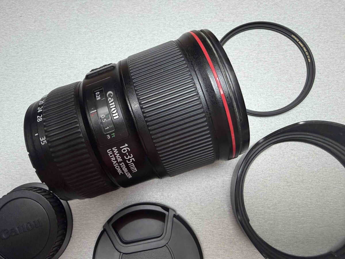 Prodám špičkový objektiv Canon 16-35 mm, plně funkční, málo používaný. Skla jsou čistá bez škrábanců, objektiv nepoškrábaný viz foto. Používal jsem ho s redukcí na RF. Součástí je UV filtr, sluneční clona a obě krytky.