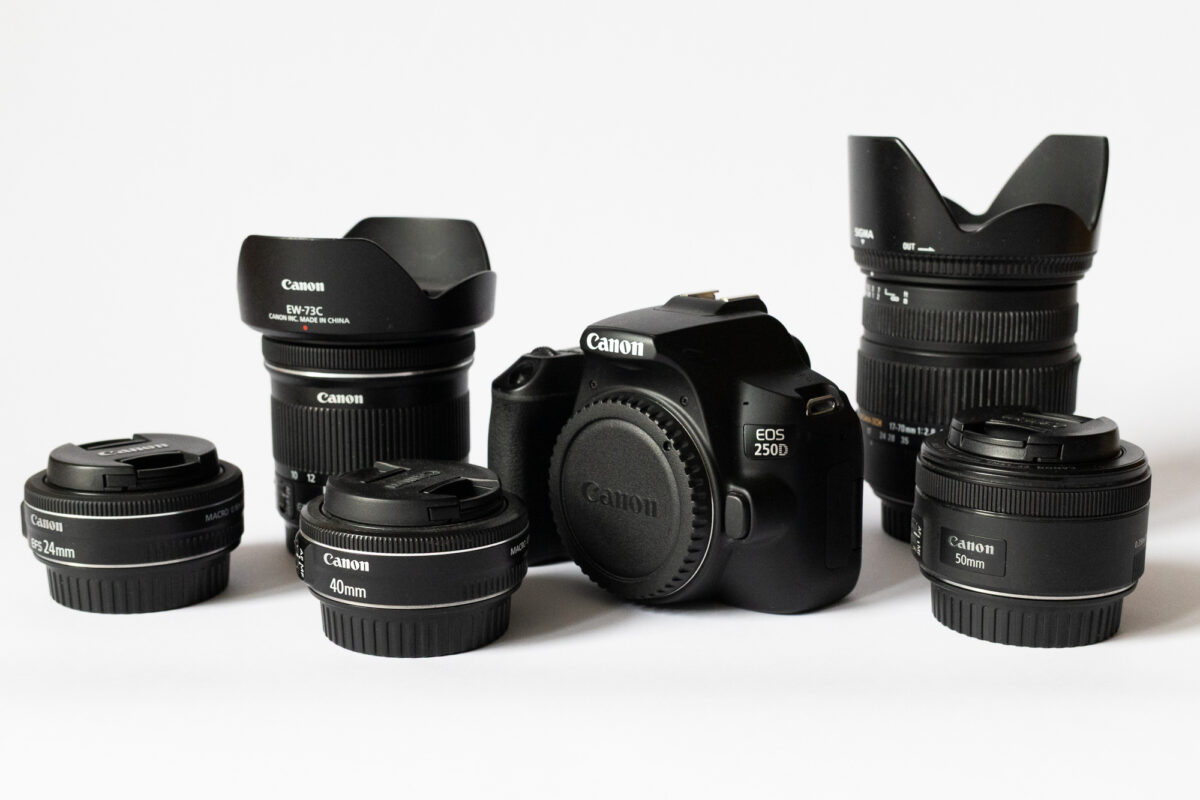 Canon EOS 250D + pět objektivů a dvě 32 GB SDHC karty