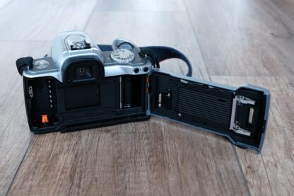 Nabízím výše uvedenou kinofilmovou zrcadlovku značky Canon. Oproti svému předchůdci již s kovovým bajonetem pro uchycení objektivů. Kvůli zkoušce funkčnosti jsem zakoupil 2 nové baterie CR2, které jsou součástí nabídky, stejně jako originální popruh a krytka těla. To již nese nějaké známky používání v podobě lehkých odřenin, jedná se však pouze o kosmetickou záležitost, funkčnost fotoaparátu je jinak bezchybná.