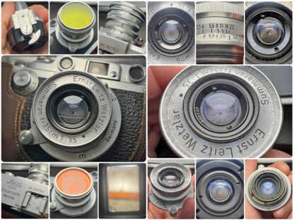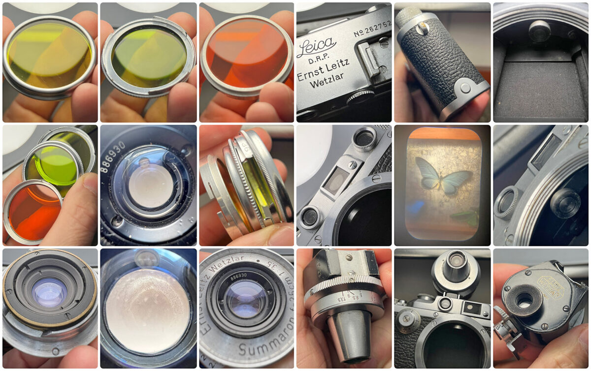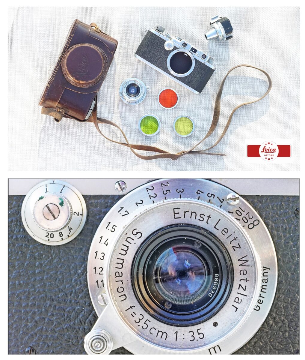 ▢ OBSAH NABÍDKY: Tělo Leica IIIa (800 pcs batch), objektiv Summaron 35mm, V-Finder, sada filtrů Ceneiplan, kožené pouzdro s popruhem. Nejsem si jist, zdali je pouzdro originál IIIa, ale v každém případě jde o originál Leica.