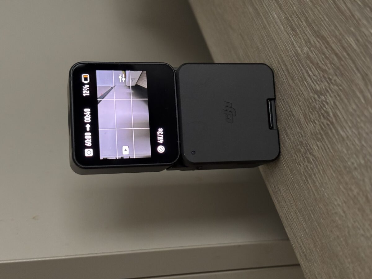Awesome DJI Action 2, one of the smallest action cameras around. It has the battery pack and some accesories (a small tripod/selfie stick, A clip for a bag and a tripod adapter), and the original magnetic clip to attach it to clothing.