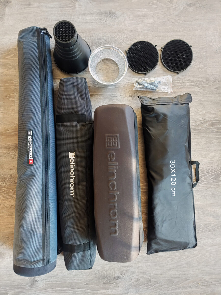 Prodám světla Elinchrom BX-Ri 500/500 To Go Set v perfektním stavu. Dale Elinchrom Rotalux 175 cm softbax, Elinchrom reflektor a set dvou voštinových filtrů, stripbox 30x120cm a kuželový optický snoot s filtry.