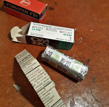 Nabízím mix retro svitkových (120) filmů. K dispozici ORWO NP20 (expirace 1977, 1989 a 1990) - citlivost ISO 80, možno snímat i na 100; a FOMAPAN F21 (expirace listopad 1989) - citlivost ISO 100. Skladovány v suchu a chladu. Všechny originálně zabalené a stále použitelné - možno vyvolat dostupnou vývojkou (Rodinal, A49, Fomadon, Xtol,...) Přiložené fotografie jsou focené na ORWO exp. 1977 a vyvolané vývojkou R09. Cena za kus. Celkem 13 ks, cena za celek 1000 Kč - tj. 3 ks zdarma. Na dotazy rád odpovím. Zaslání je možné na dobírku Zásilkovnou/Balíkovnou/PPL. Posílám i na Slovensko - na dobírku Zasielkovňou.