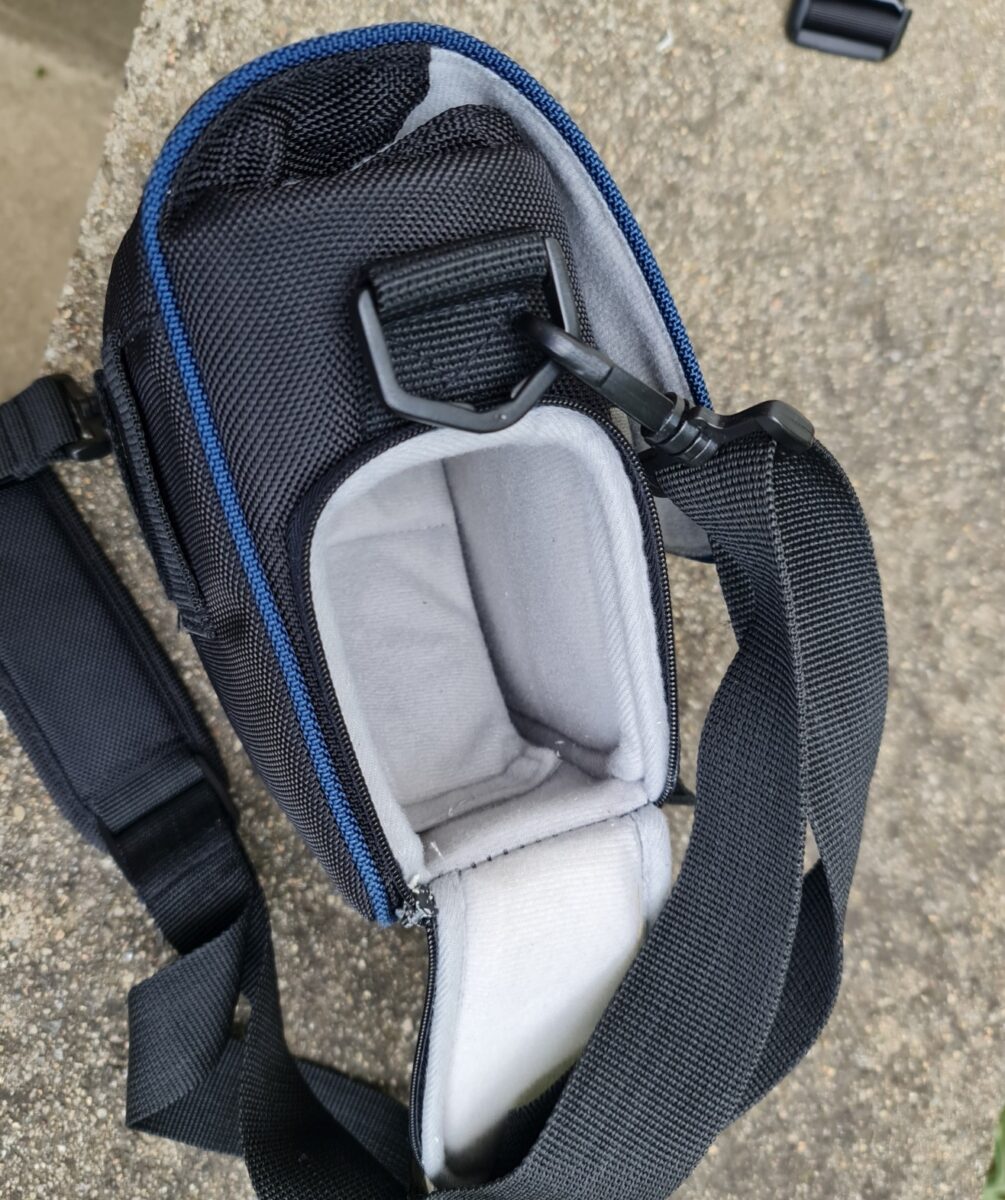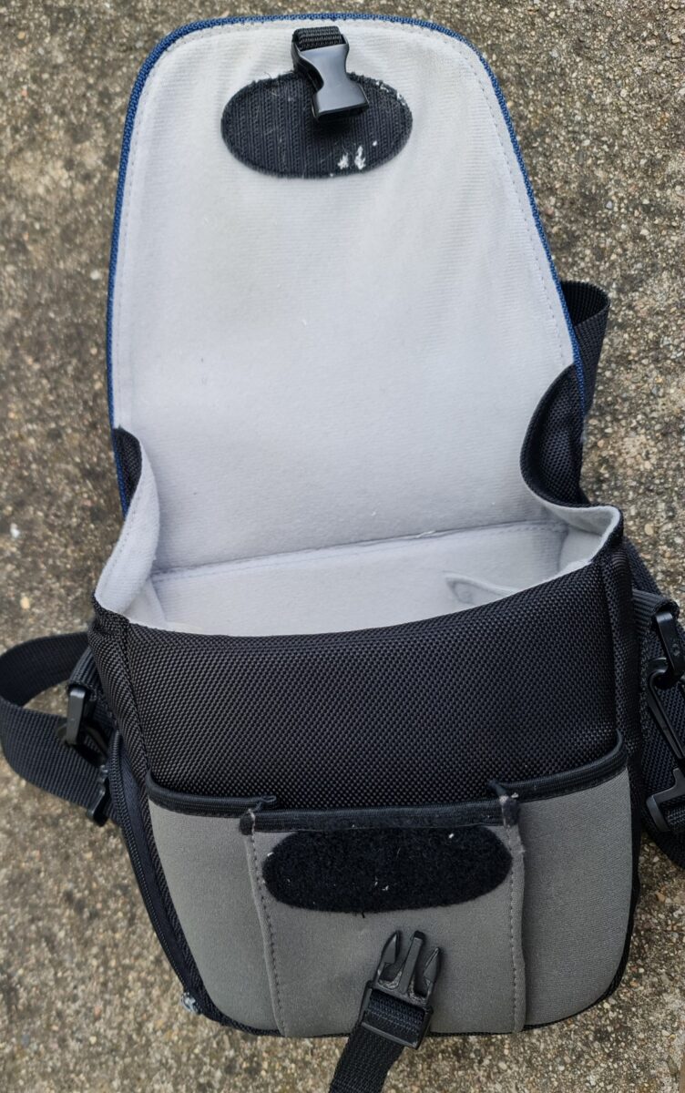 Prodám fotobrašnu Olympus E-systém. Velikostně vhodná na bezzrcadlovku s objektivem a ještě jedním – má samostatný boční otvor.