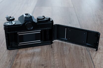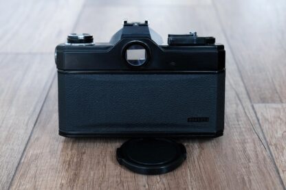 Nabízím výše uvedenou sestavu ve velmi pěkném stavu. Fotoaparát se zdá být plně funkční, co má se otáčí, závěrka lze natáhnout/cvaká, samospoušť funguje, časy sedí. Celkově ve velmi pěkném, čistém stavu. Objektiv je plně funkční, optika bez škrábanců, plísní, nebo zamlžení. Chod ostření už není stoprocentní a zasloužil by promazat(tuhý, stále však plně použitelný), čím více se používá, tím lépe funguje. Clona je suchá a přesná. Součástí je i celokožený obal s popruhem, viz fotografie č. 2. Pokud by měl někdo zájem, lze koupit i samostatně(tělo 1000,-/objektiv 1500,-).