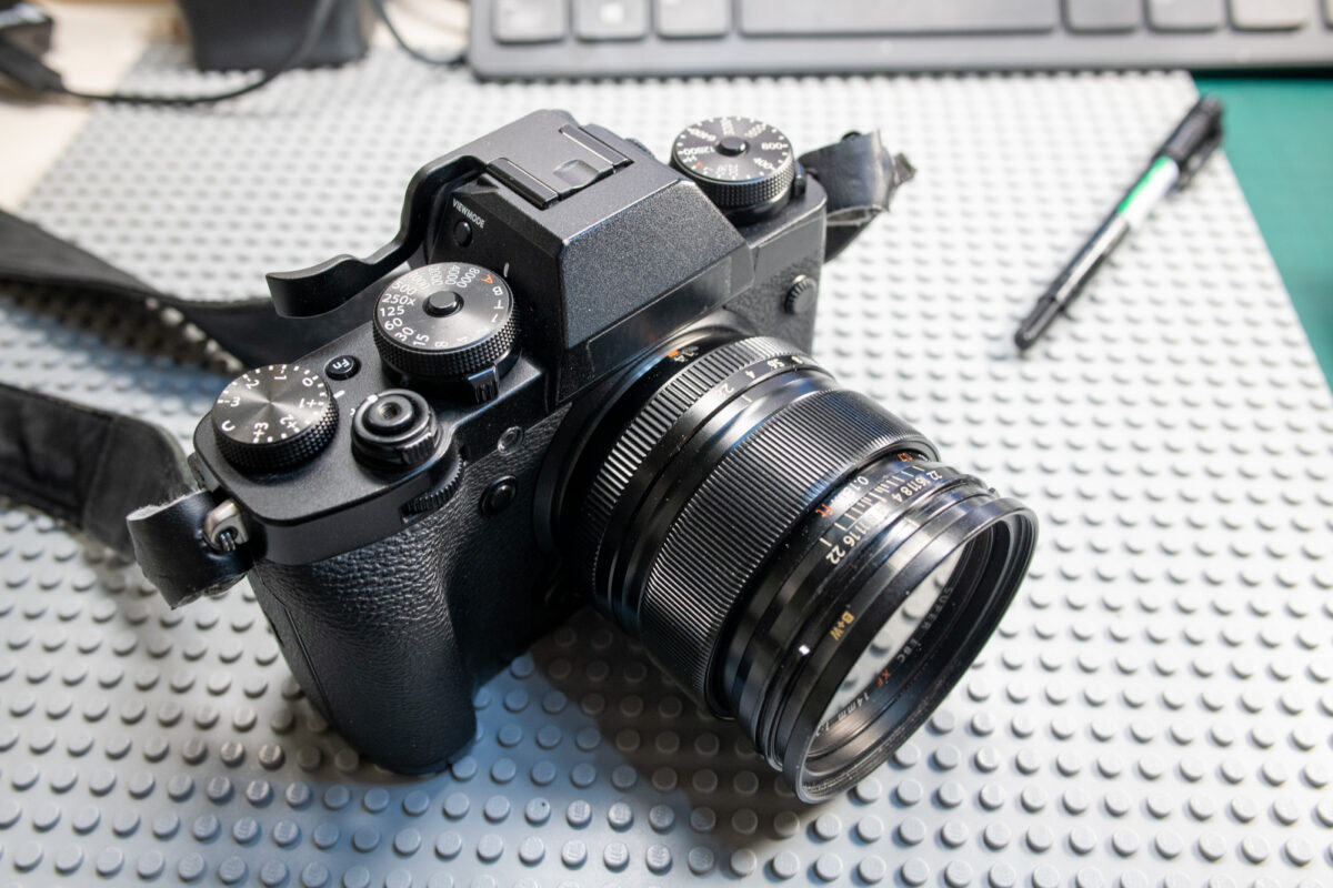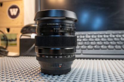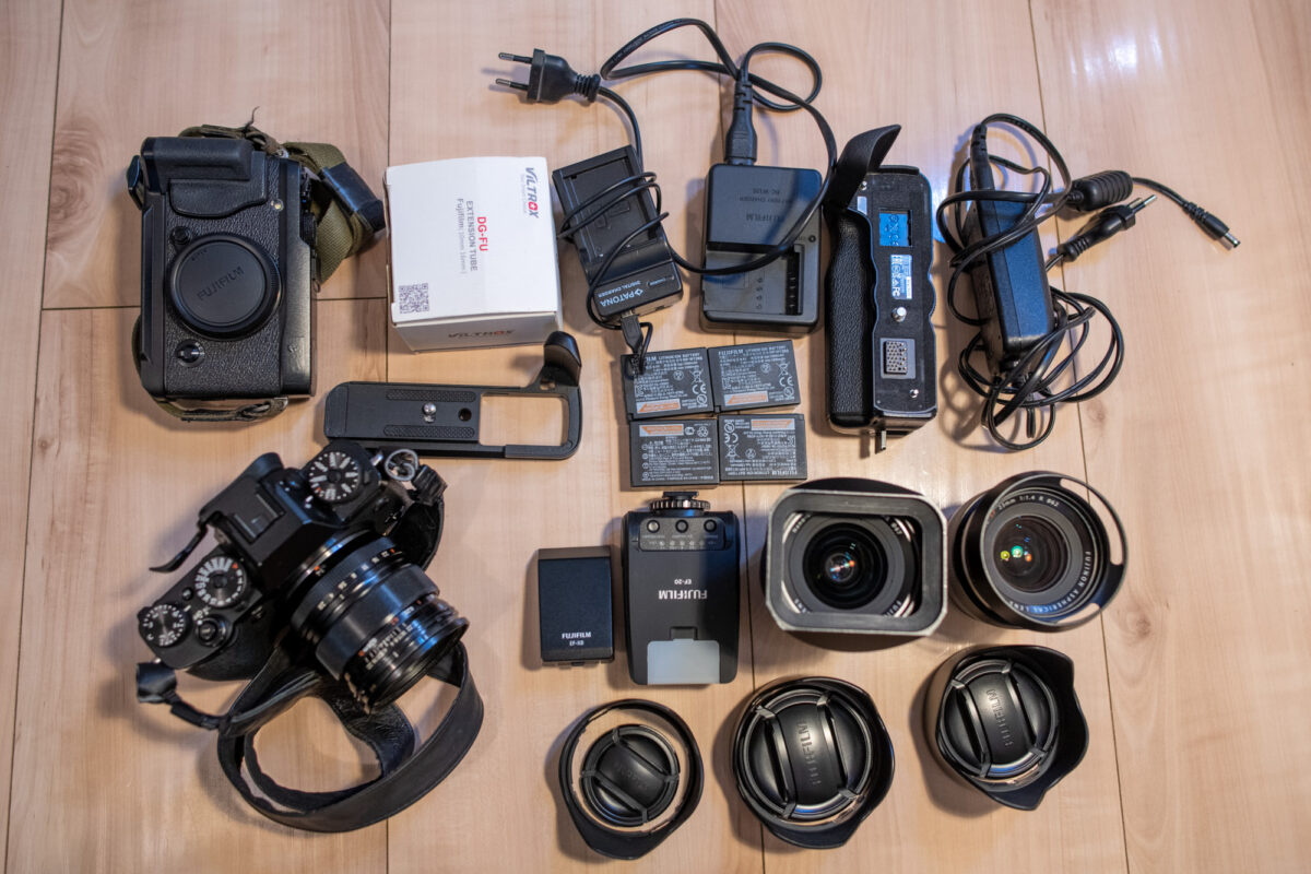 Fujifilm XF 23mm f/1.4 R (starší verze bez LM) + filtr B+W XS-Pro Digital MRC nano + originální clona + retro clona + krytky (ukázky fotografií z objektivu - https://photograph.cz/tags/fuji+xf+23mm+f1.4/ )