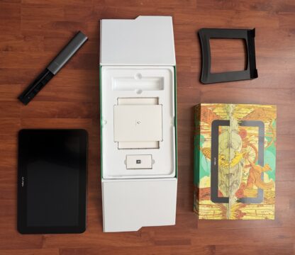 Kompletní balení vyjma použité rukavice, přidávám i stojánek, který nebyl součástí balení. Upřednostňují osobní předání. Důvod prodeje, pořídil jsem si jiný tablet a tento už nepoužívám. Běžná prodejní cena nového tabletu je okolo 20 tis Kč.