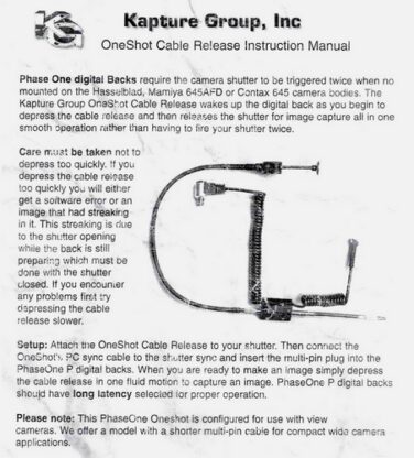 Kapture Group One Shot Release Cable for Phase One 8 pin