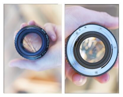 Objektiv SMC Pentax-A 50mm f/1.4: №1104055, výroba Asahi Optical Co., Japonsko zhruba ve stejném období.
