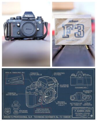 Kinofilm Nikon F3 (1981), drobný servis 2026, nové baterie, Nikon F