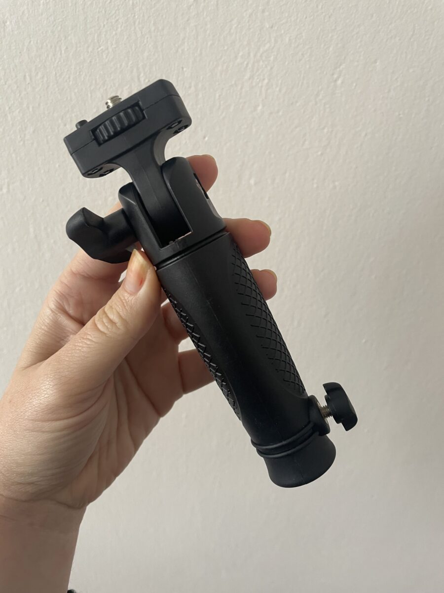 - držák do ruky (lze rovnou též nasadit na stativ)
