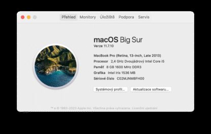 Intel Core i5, retina displej, 256GB SSD, 8GB RAM.