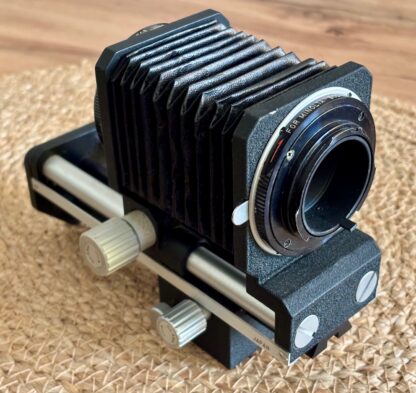Prodám měchové zařízení AICO s bajonetem Minolta MD. Měchové zařízení AICO má možnost výměny bajonetového uchycení jak objektivu, tak i těla za jiný.