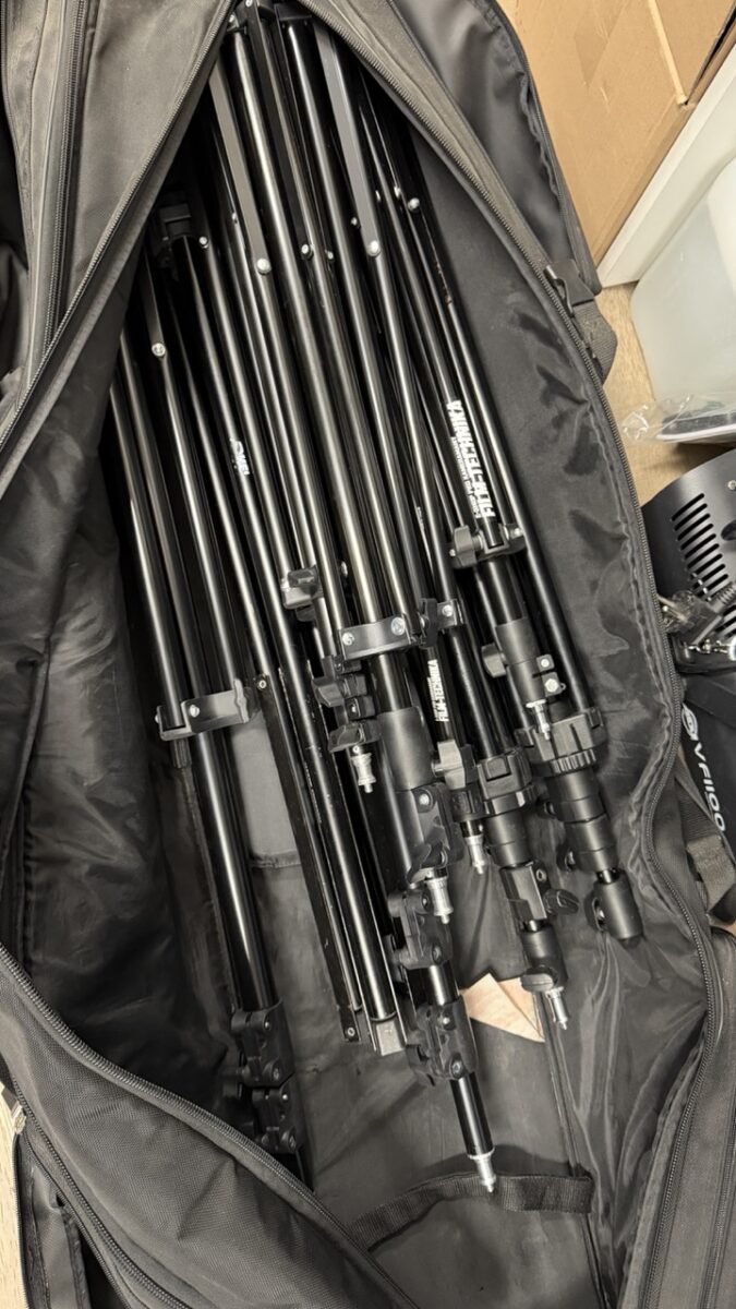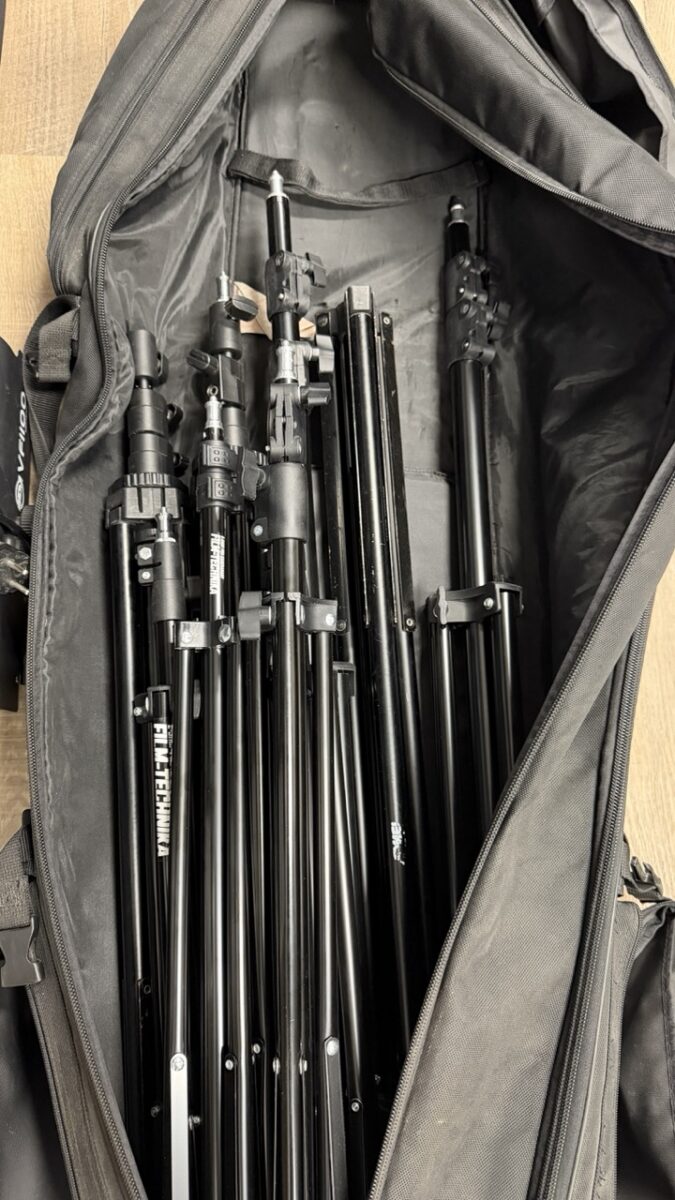5x velký stativ, hlavně Fomei, 4x menší Film-Technika. Všechny stativy 100 procent fungují. Taška už hodně ojetá, ale funguje .