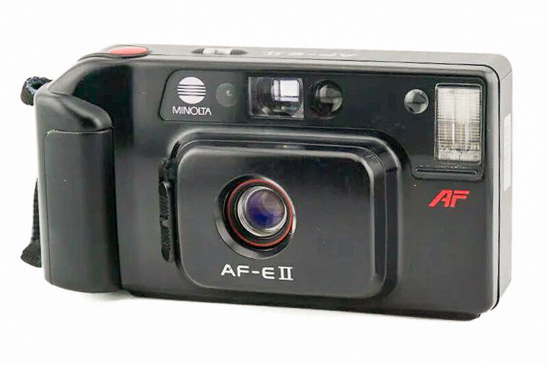 Prodám kinofilmový kompaktní fotoaparát Minolta AF-E II. Plně funkční, napájení 4 mikro tužkové baterie. (Nová sada baterií je součástí.) Ostření, transport, blesk - vše odzkoušeno. Původní popruh. Tělo z černého plastu, na přední straně mírně poškrábaný. Optika čistá. Ostření automatické. Na zadní straně Quartz Date stěna. (Zobrazuje od roku 1980 do 2020)