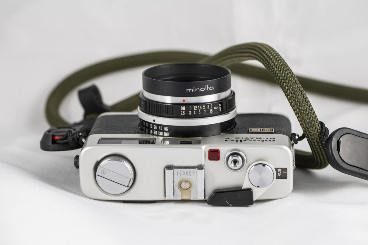 Minolta Hi – Matic F stříbrná + popruh