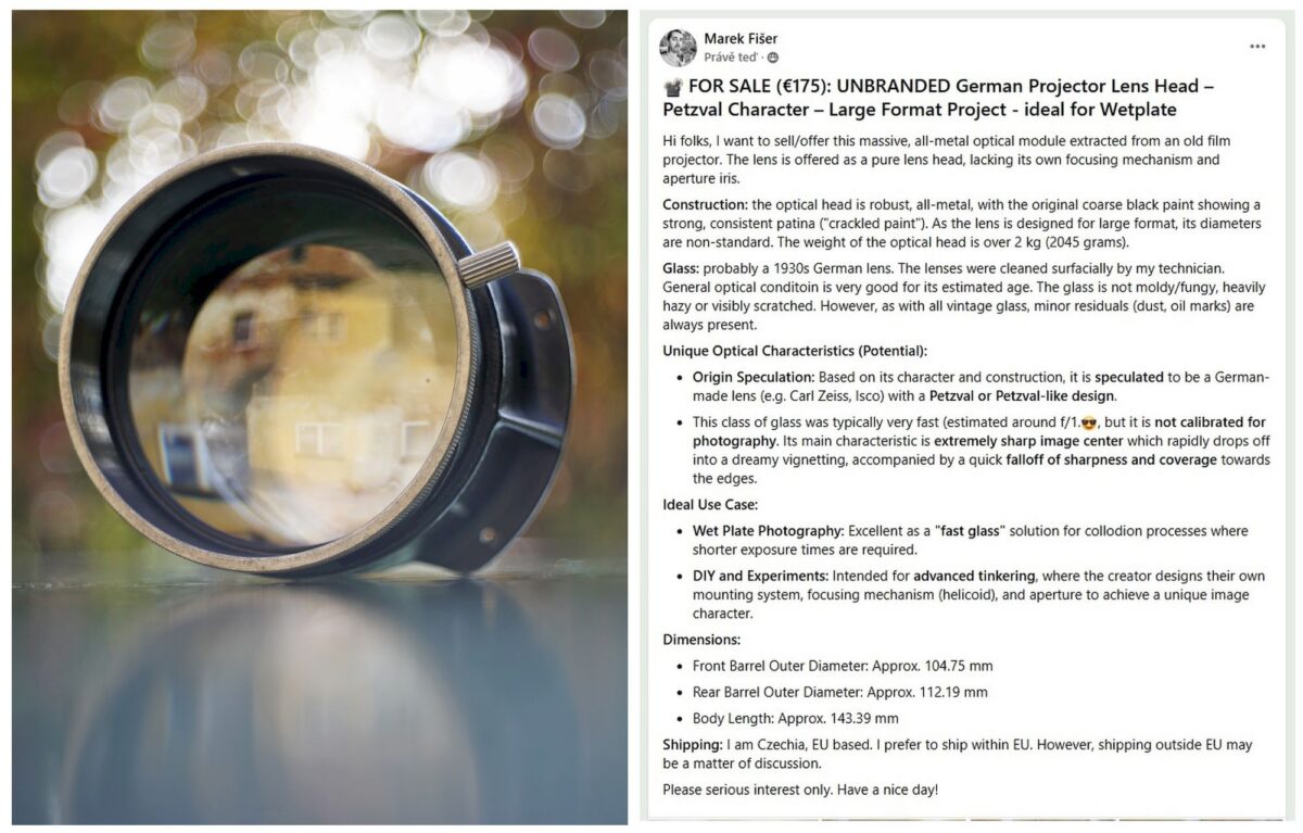 Neoznačený Německý projekční objektiv (cca 1930s) – Petzval charakter – velkoformát, vhodný pro kolodiový proces
