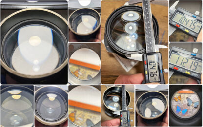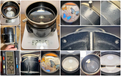 Čočky: Jedná se o objektiv s odhadovaným původem v Německu, cca 30. léta. Čočky byly povrchově očištěny mým technikem. Celkový optický stav je na jeho odhadovaný věk velmi dobrý. Sklo není plesnivé, silně mlžné ani viditelně poškrábané. Je však třeba počítat s tím, že se jedná o starou optiku; drobná rezidua (prach, olejové stopy) jsou vždy přítomna.