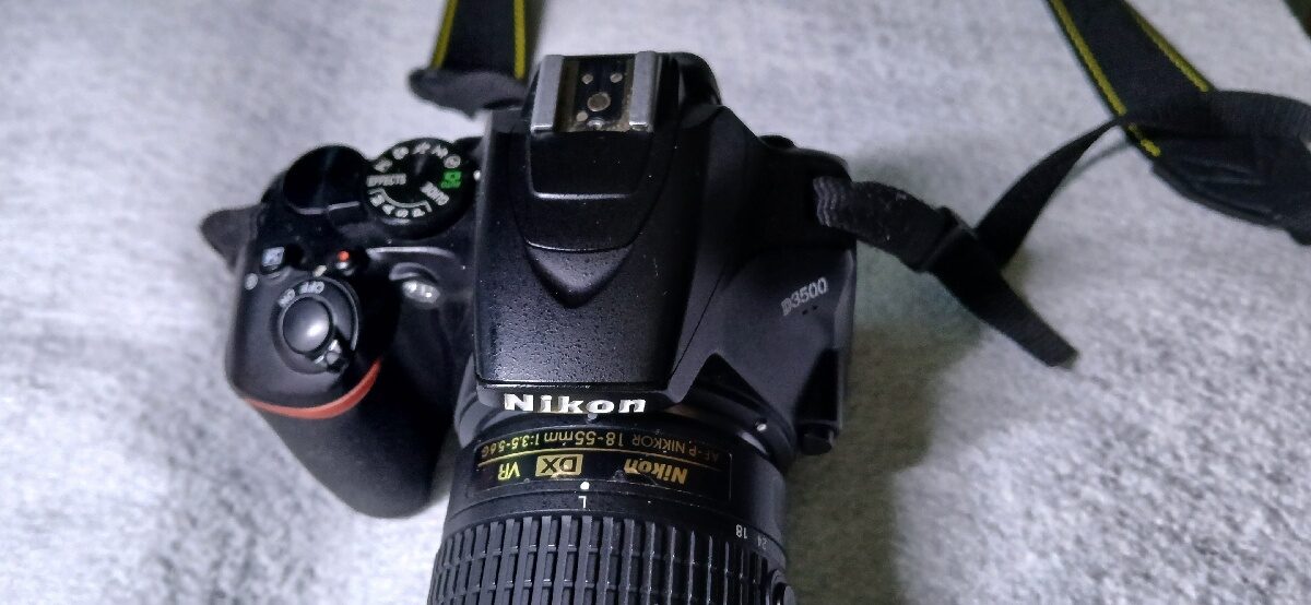 Prodám fotoaparát Nikon D3500 ve velmi zachovalém stavu a objektiv AF-P Nikkor 18-55mm 1:3,5-5,6G VR DX.