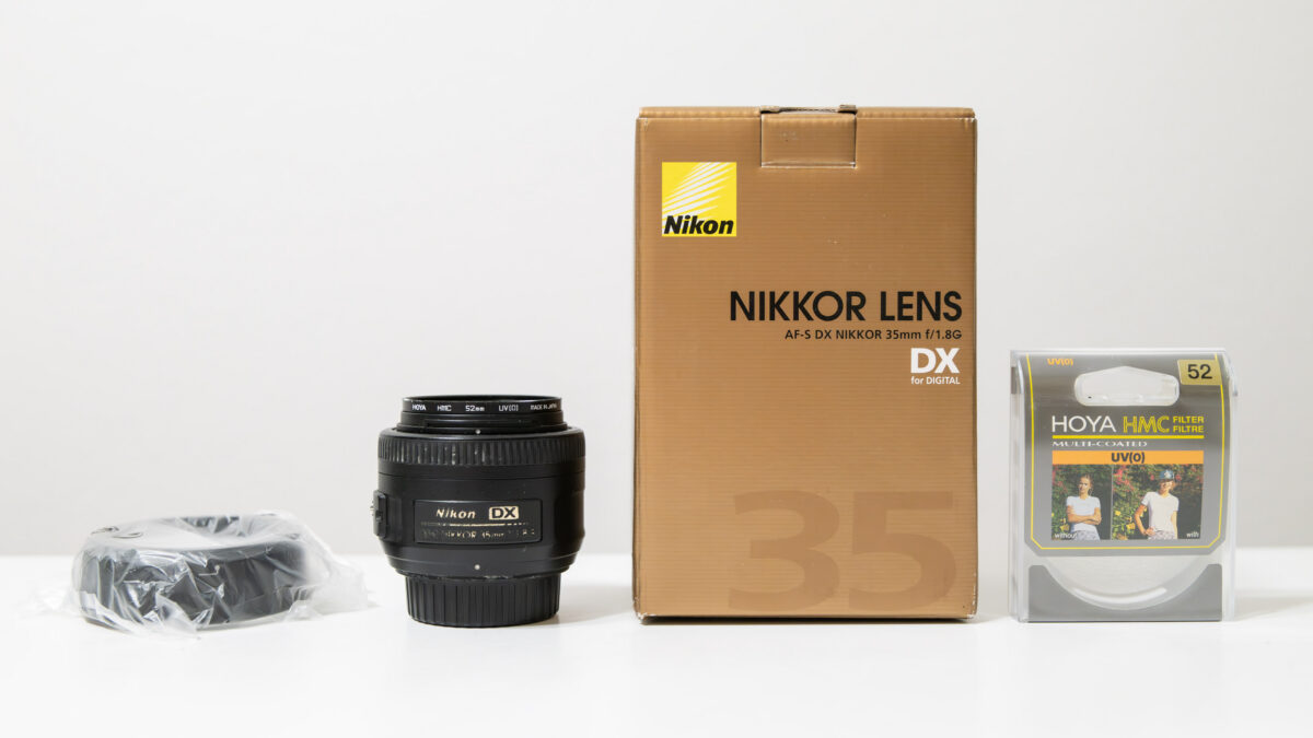 Součástí zadní krytka, filtr UV Hoya HMC, krabice, manuál.