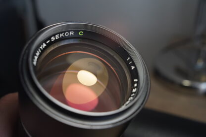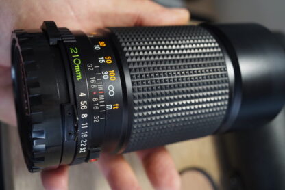 Objektiv Mamiya Sekor C 210mm f/4 pro středoformátové fotoaparáty Mamiya 645. Objektiv je v perfektním stavu – úplně nový, bez jakýchkoli známek používání. Optika je naprosto čistá a nádherná. Clona též. Mechanicky vše chodí plynule.