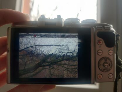 Displej má problém s ribbon kabelem, v určitých polohách je obraz zdeformovaný, náhradní kus stojí okolo 3 stovek, oprava není úplně triviální, ale je možná. Nicméně displej vždy naběhne a fotky dělá úplně vpořádku, má hdmi port takže určitě lze využít třeba jako webkamera.