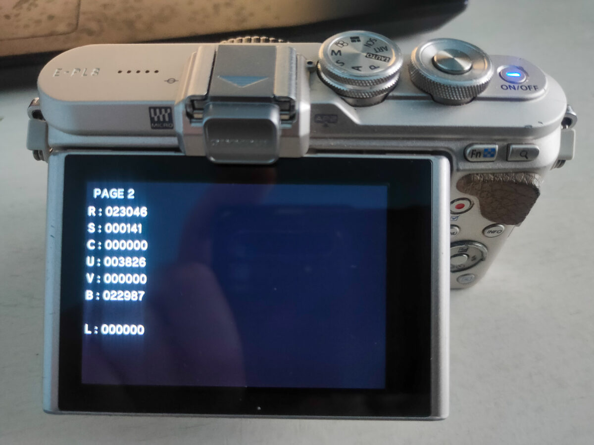 Stav závěrky: Pouze 23 046 snímků (ověřeno v servisním menu). Životnost je dimenzována na minimálně 100 000, stroj je tedy v první čtvrtině životnosti.