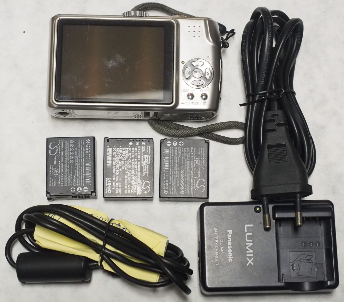 Kompaktní digitální fotoaparát, zcela funkční, provedení a kvalita odpovídající době uvedení. Součástí je nabíječka, 3xakumulátor + kabely.