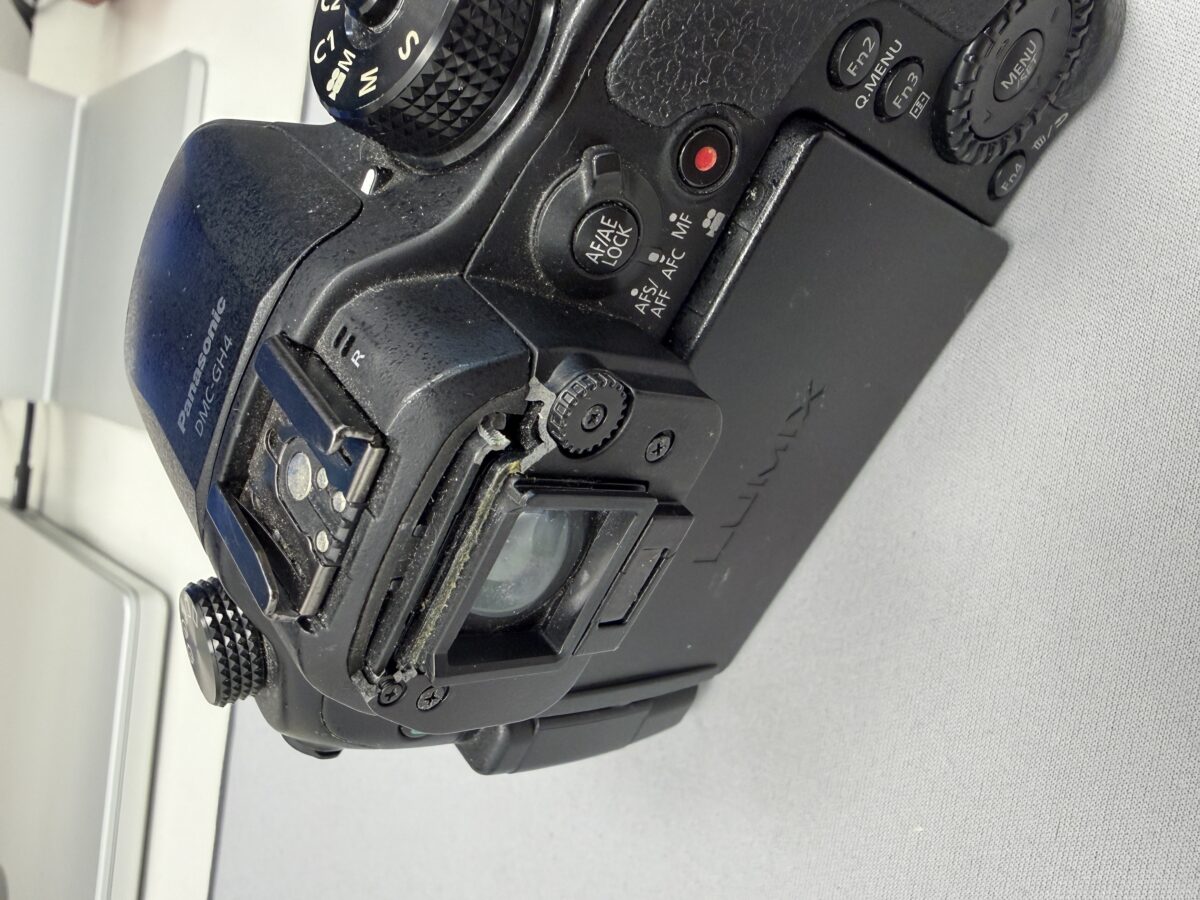 Prodám tělo fotoaparátu Panasonic GH4, které mi v minulosti spadlo, ale vše funguje, pouze poškození u hledáčku viz foto.