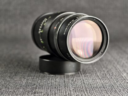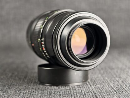 Skvělý teleobjektiv německé značky s mnohalamelovou plynulou clonou, sluneční clonou, originální krabičkou a krytkami. Krásný stav optiky, jen jsou ošoupané nápisy na tělu.