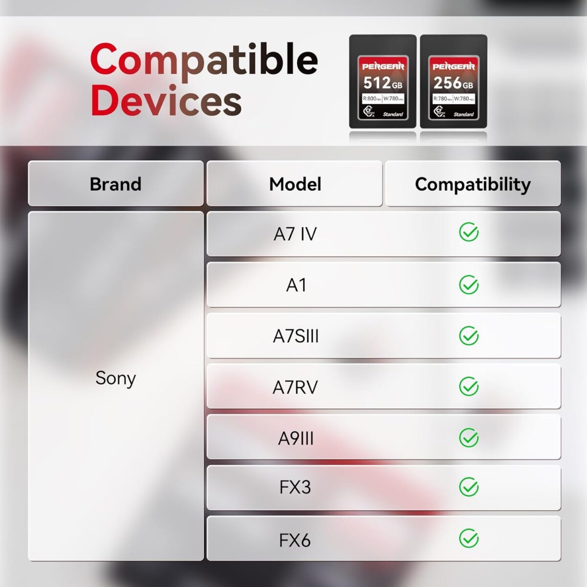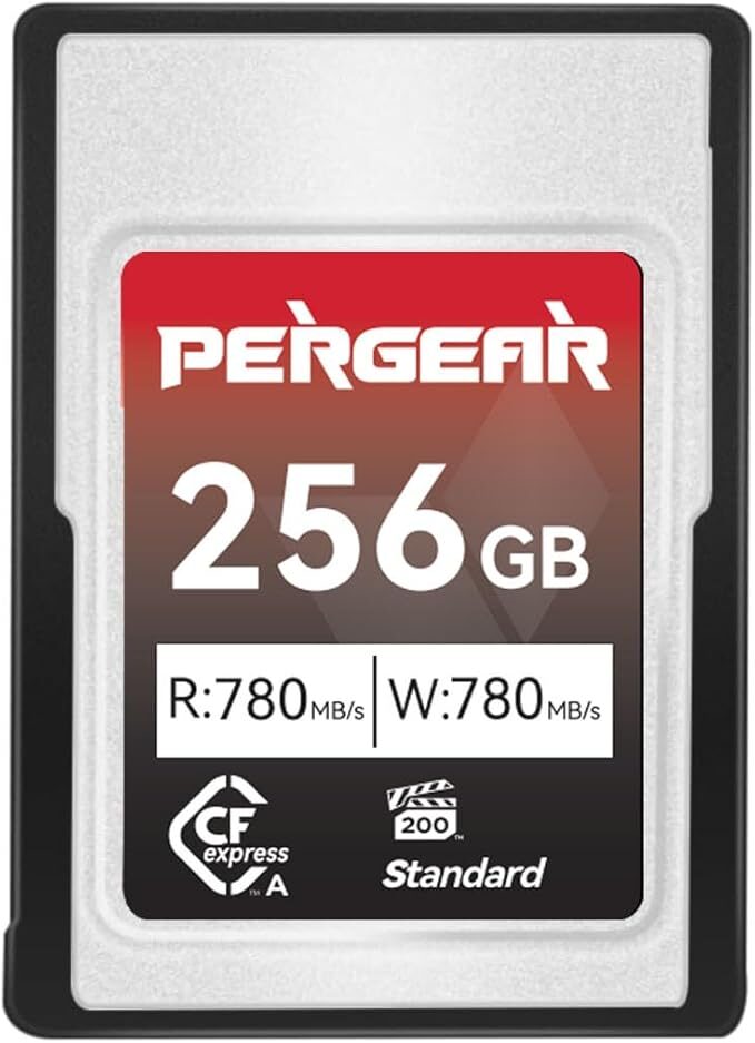 Pergear Paměťová karta 256 GB CFexpress typ A, rychlost čtení až 780 MB/s a 780 MB/s rychlost zápisu pro 4K 120P, nahrávání 8K 30P (standardní série) kompatibilní s fotoaparáty Sony Alpha & FX. Nová, nevybalená.