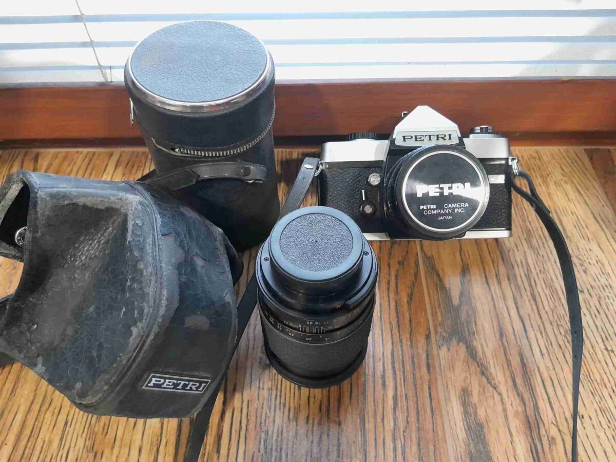 hist. 35mm kinofilmová zrcadlovka vyráběná koncem 70.let s manuálním ovládáním. poctivá kovová konstrukce, ideální pro začátečníky. Využívá objektivy se závitem M42 (široký výběr různých objektivů značek) Nasazený objektiv 50mm. V přsíslušenství druhý objektiv na focení vzdálených objektů. Delší čas nepoužívaný. Cena za komplet. Osobní odběr.