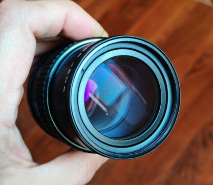 Kratší teleobjektiv s výbornou ostrostí, pěknými MC vrstvami, čistým podáním.