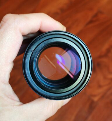 Kratší teleobjektiv s výbornou ostrostí, pěknými MC vrstvami, čistým podáním.