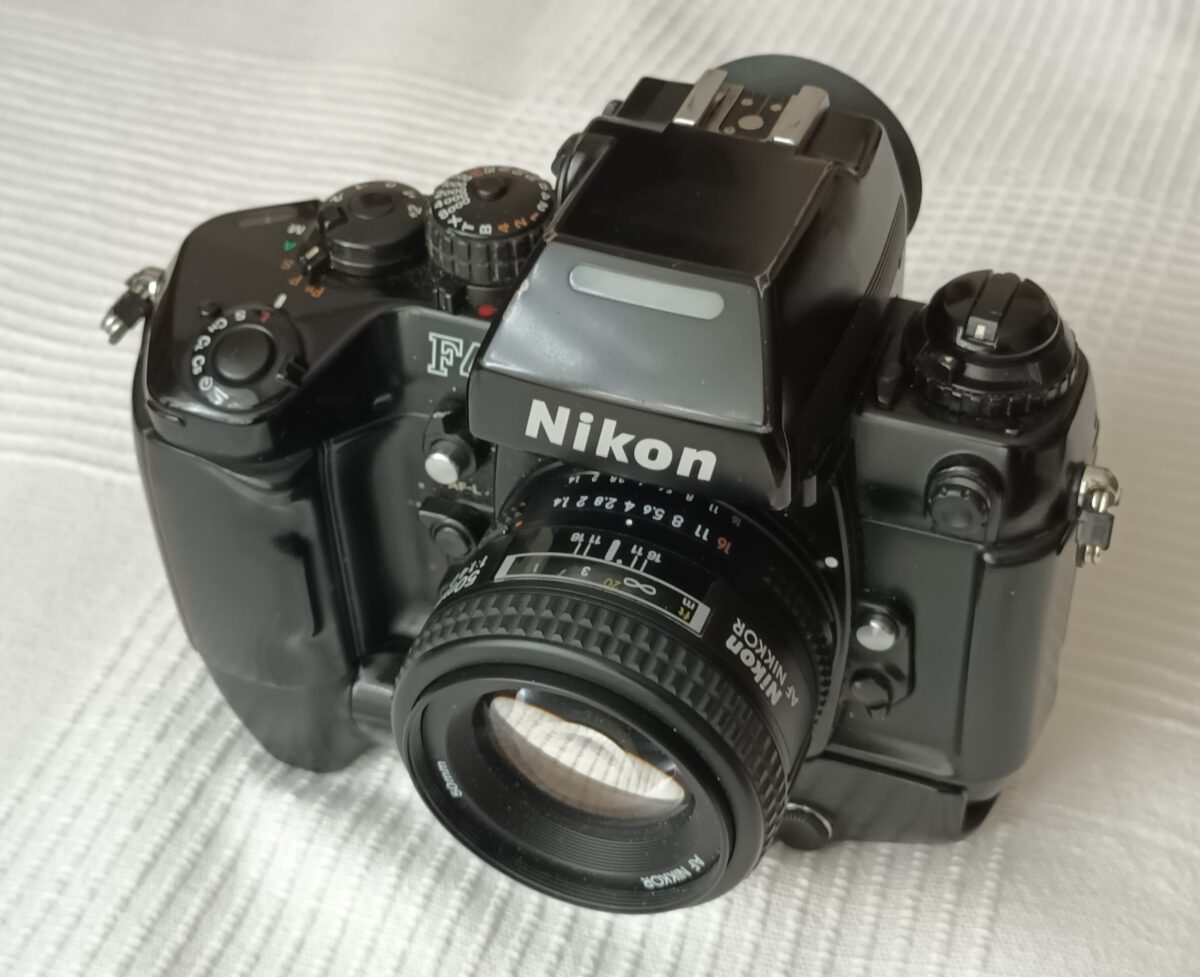 Prodám profesionální filmový fotoaparát NIKON F4 s objektivem Nikkor AF 50mm 1:1,4. Aparát je vzhledově v bezvadném stavu, plně funkční. Přikládám krytku těla, obě krytky objektivu, nabíječku AA akumulátorů a originální Instruction Manual.