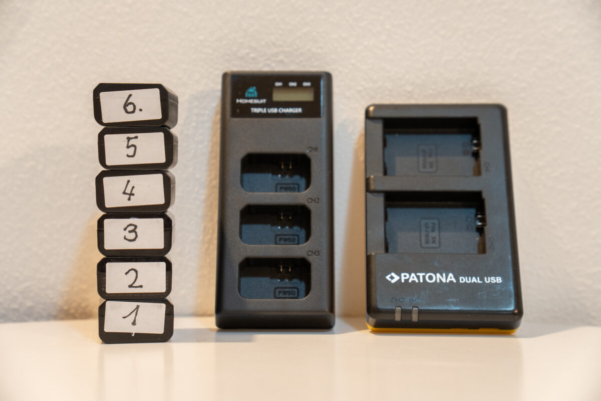Nabíječka Patona (2 sloty), nabíječka Homesuit (3 sloty), 6× baterie — 1 000 Kč