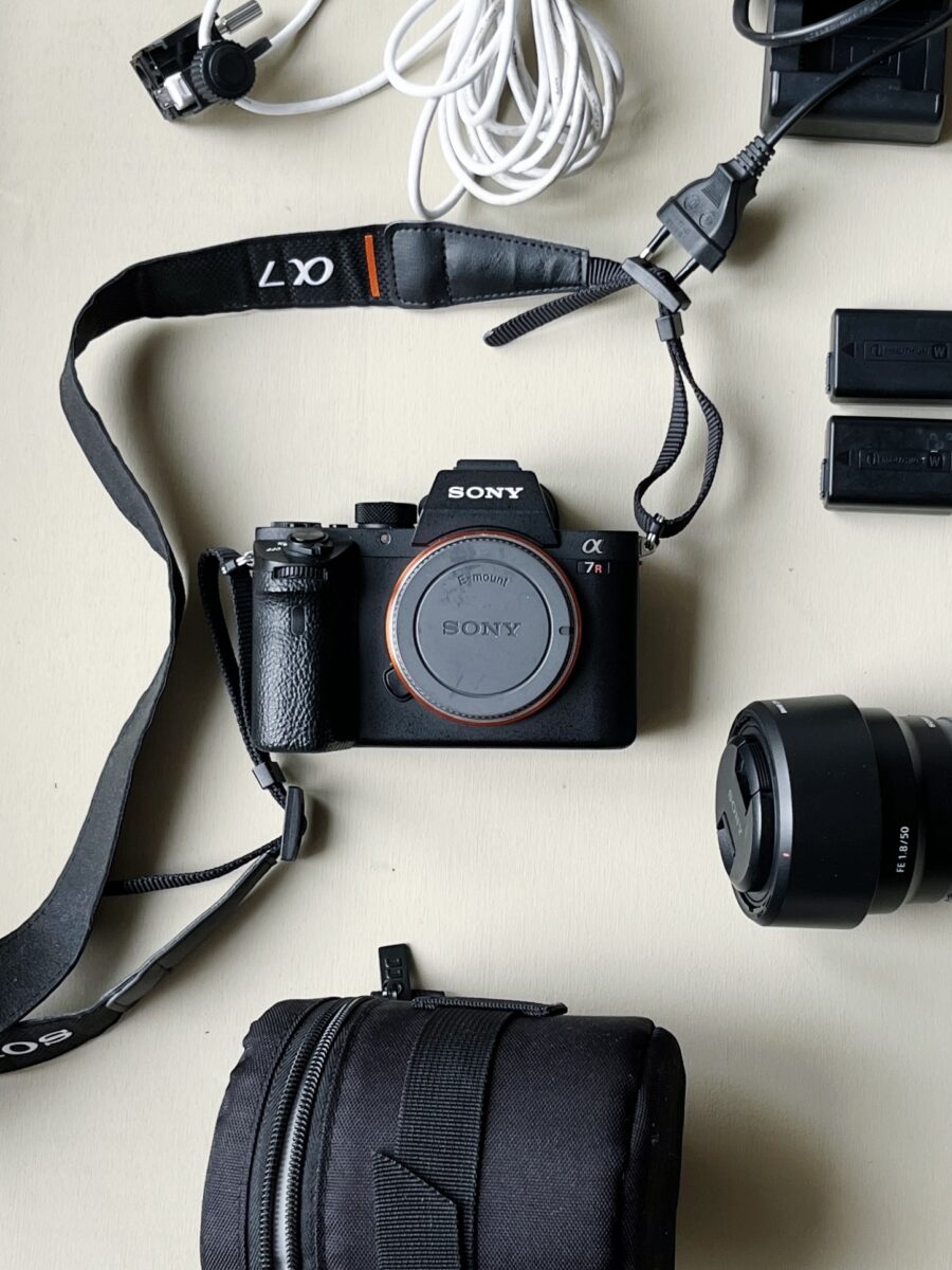 – Sony A7RII: foťák, originální baterie, krytka senzoru, originální nabíječka, nepoužitý popruh, bezpečnostní úchyt datového kabelu