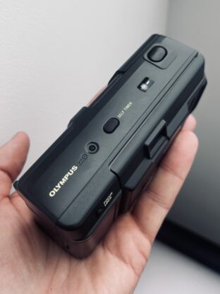 Olympus AF-1 uvedený na trh v roce 1986 je světovou premiérou mezi plně automatickými kompakty s voděodolným tělem, ostrým Zuiko 35mm f/2.8 objektivem a dědictvím legendy série XA. Jedná se o voděodolného předchůdce mjučka - nezklame v dešti, na horách ani u moře. Jednoduché ovládání: otevřete kryt objektivu a střílejte – autofocus s aretací, motorový posun filmu, DX čtečka ISO 50-3200 a expoziční časy od 1/30s do 1/750s. Fotoaparát prošel CLA odborníkem a je ve stavu nového. Lithiová baterie CR-P2 v ceně.