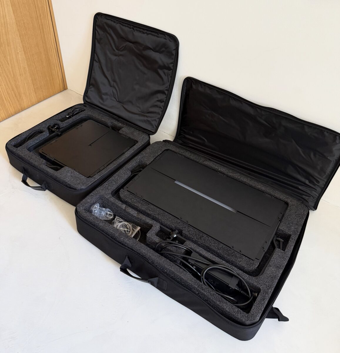 100% stav nového. Součást origo praktické brašny s vyměkčením. Kabely.
