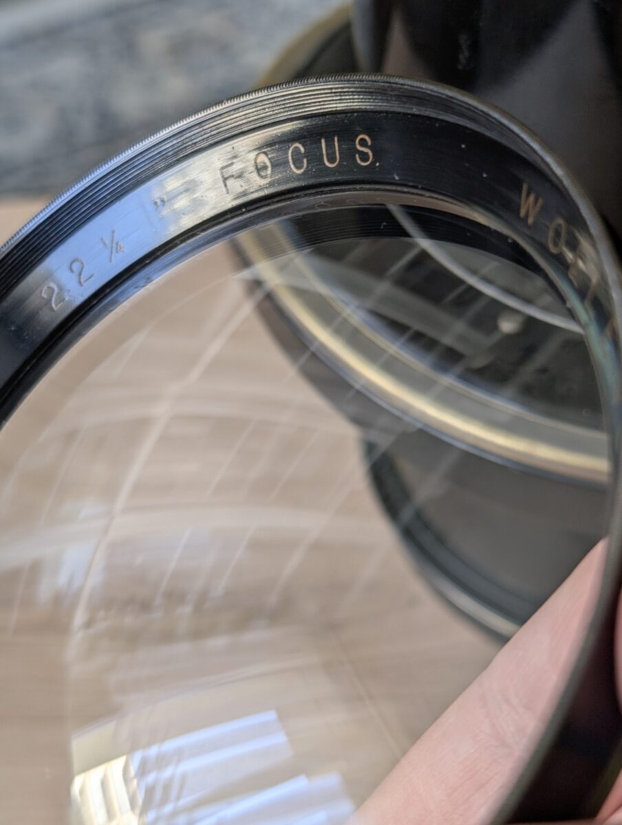 Nejúspěšnější soft-focus/piktorialistický objektiv historie, zde ve vzácné a nejdelší variantě 460mm. Pokryv je na plnou díru alespoň 24x30cm, při použití jen zadního elementu stoupne ohnisko na přibližně 760mm a clona stoupne na ~f6.4.