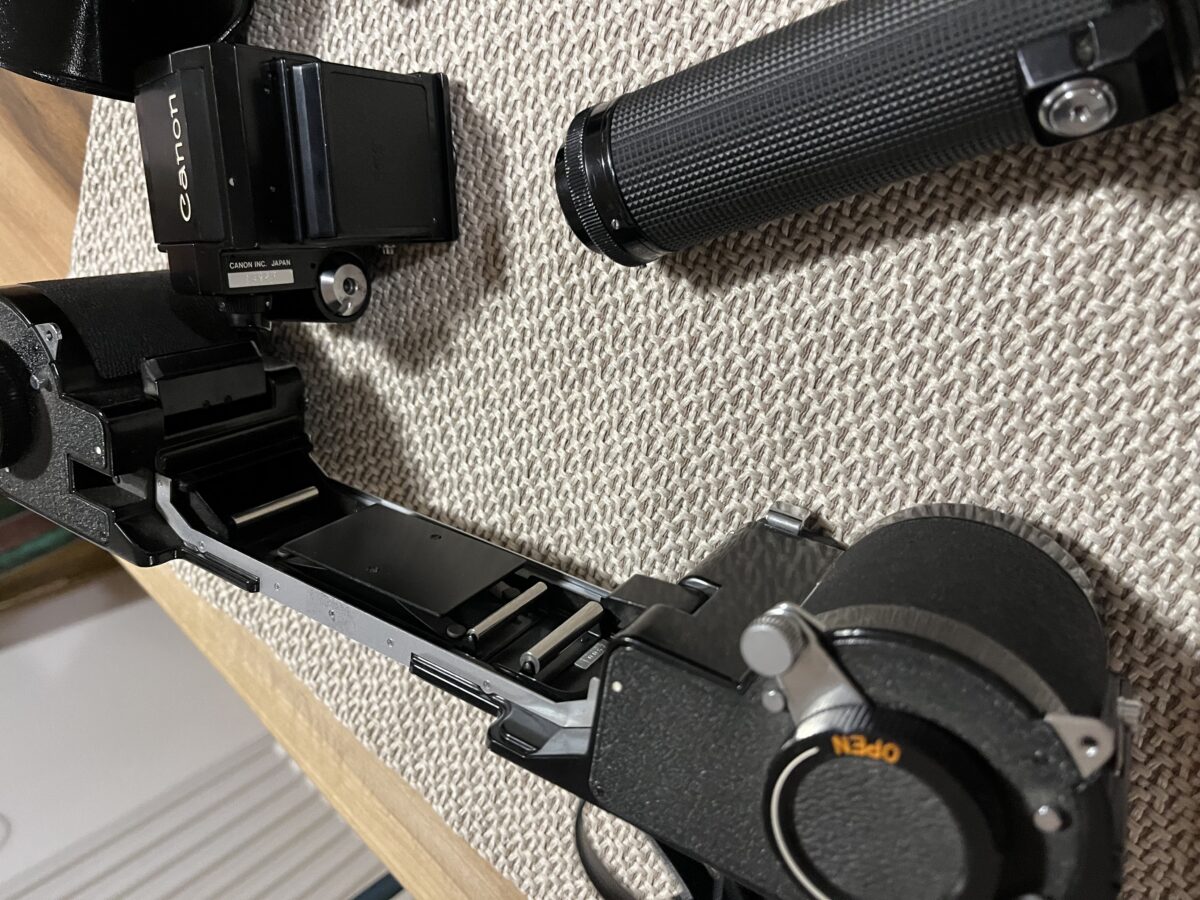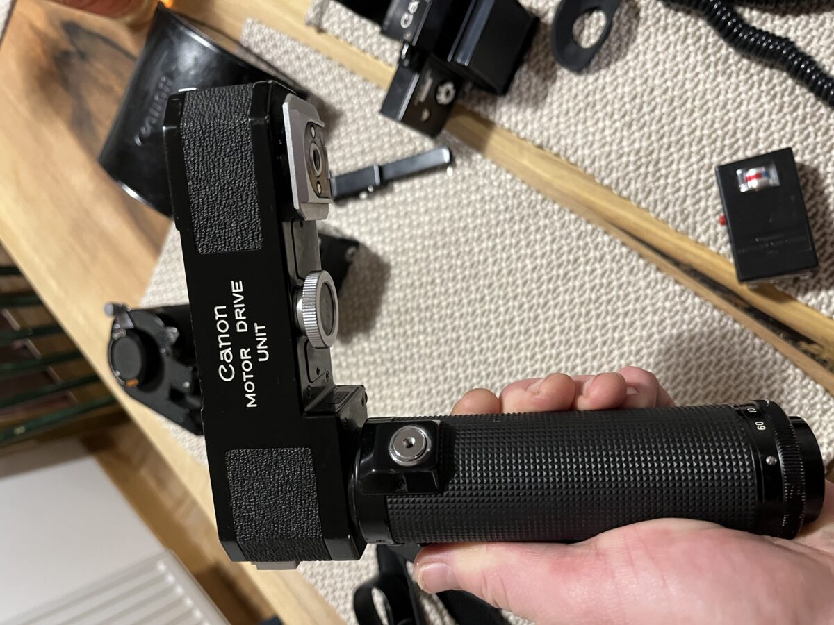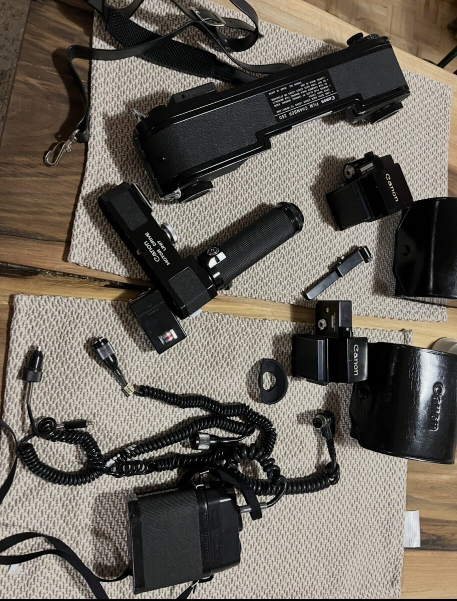 Canon Motor Drive Unit: Robustný motorový pohon pre pôvodnú F-1, nevyhnutný pre prácu s Film Chamber 250. Zabezpečuje bleskový posun filmu a napájanie celého systému.