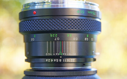 Nabízím základní objektiv Zenzanon MC 75mm f/2.8 s bajonetem Bronica ETR. Tento objektiv je ekvivalentem 45mm ohniska na kinofilmu a je ideální pro portrétní a reportážní fotografii v oblíbeném mini-středoformátu 6x4,5 cm.
