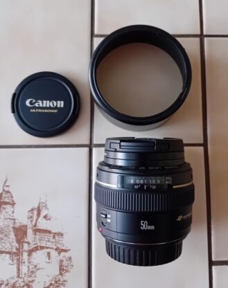 Objektiv je ve výborném stavu, jako nový, v soustavě čoček jedno prachové zrnko. Přidám náhradní krytku, neoriginální clonu a originální nový Canon protect 58 mm za 600,- +…
