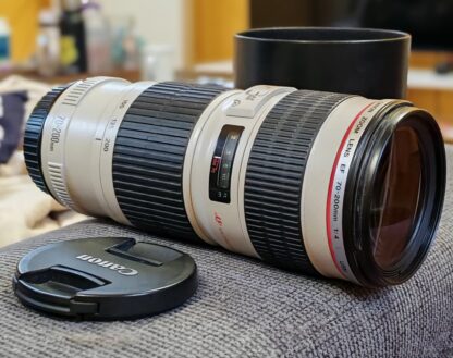Skvělý teleobjektiv řady L. Lehká konstrukce, parádní USM ostření. Perfektní stav, skla čistá. Obě krytky, sluneční clona součástí. Praha osobně, případně možnost zaslání po domluvě.