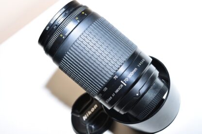 Dobrý stav, optika bez poškození, funkčně v pořádku. Vysoce výkonný telezoom typu G. Devítilamelová clona pro přirozený vzhled neostrých míst. Předávání hodnoty zaostřené vzdálenosti do těla fotoaparátu. Nikkor…