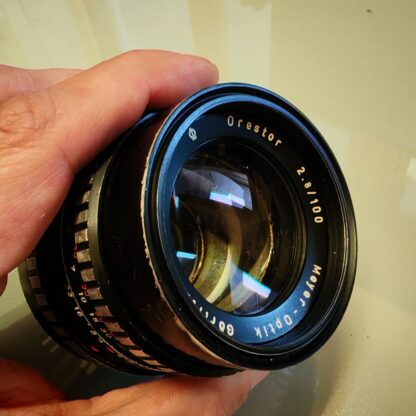 Poctivý kovový portréťák od Meyera s m42 bajonetem. Tubus nese známky používání, optika není dokonalá, ale bez viditelných škrábanců nebo mlhy. Ostření i clona v pořádku, není zatuhlé.…