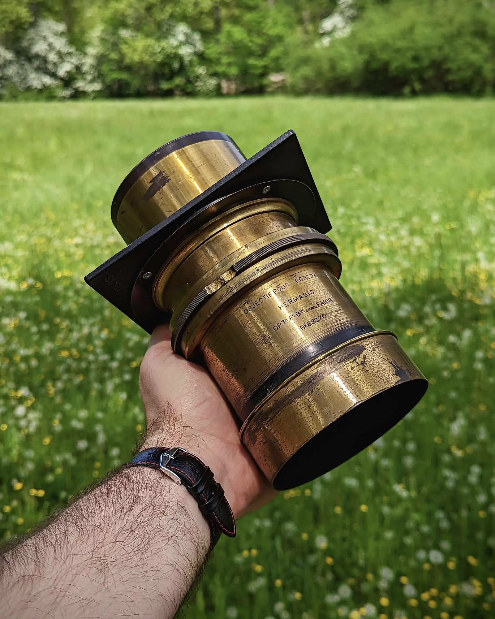 Slovní omáčku máme za sebou, teď už zbývá jen šokovat čtenáře — Hermagis Portrait všechny tyhle atributy bezchybnýho portrétního objektivu splňuje! Světelnost je cca. f3.9, takže je to zatraceně světelný, ale zároveň to nemá tak ostrobřité DoF jako f3 a méně. JEŠTĚ MÉNĚ?! Ano, třeba Walzl (a variace jako Waibl nebo Wcaibl), Ross, Dallmeyer C ad.).